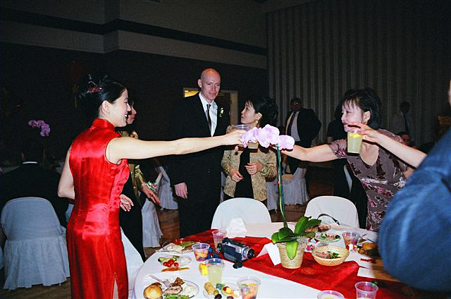 Cheers ("Gan Bai" in chinese) with Auntie Shelley and Auntie Nancy.