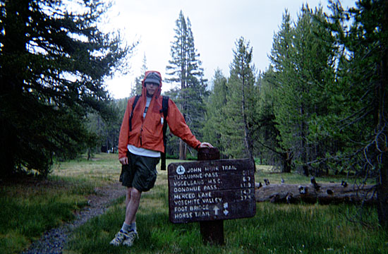 John Muir was the naturalist and poet who early (late 19th C.) recognized the beauty of Yosemite and pushed for its protection. The main trail through the alpine meadows is named for him. This picture is taken just 5 minutes before an enormous squall hits us with a vengeance. Beauty doesn't come easy.